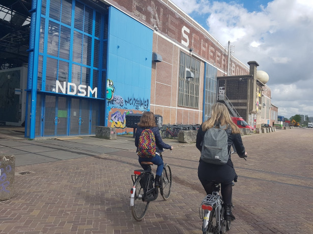 De harde wind neemt ons mee naar de NDSM werf in Amsterdam Noord. Ooit de kern van economische groei uit de scheepsbouw, later door verplaatsing van deze bouwactiviteit stond het gebied voor verlies van duizenden banen en groot verval. Door creatief om te gaan met kansen is dit gebied een ware broedplaats geworden waar vele bezoekers op af komen.