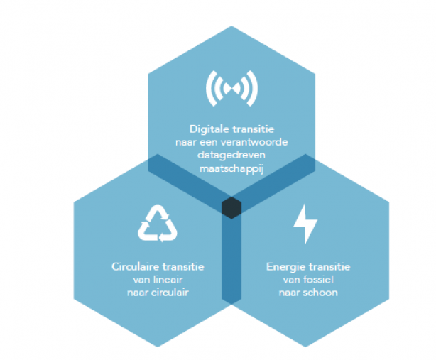 Komende tijd zetten we in op het delen van onze kennis en inzichten op weg naar de slimme, groene en gezonde toekomstige regio. We starten met verdiepende artikelen voor elk van de drie transities: digitaal, circulair en energie.