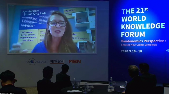 Our progress towards becoming a Metropolitan Area of the future is getting noticed. Amsterdam received the FIRST-EVER Smart Cities Overseas Award in September of 2020. Leonie van den Beuken, our program director, was live in Korea to accept this award on behalf of the Amsterdam Smart City network!