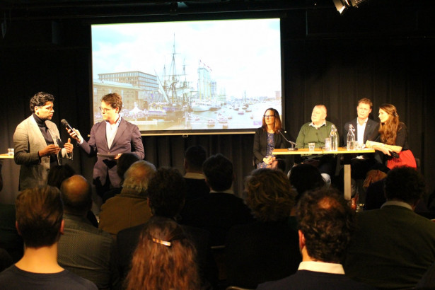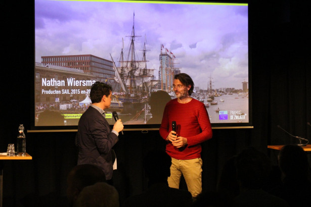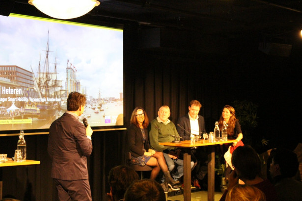 The night was opened by program director Amsterdam Smart City, Leonie van den Beuken. She set the goal for the night: as Amsterdam Smart City we would like to accelerate innovations and learn from and with each other. After this, Nathan Wiersma, producer of SAIL, a sailing party with hunderds of tallships and more than 2 million visitors, tells the audience about all the boats that have to enter the Port of Amsterdam, which is quite narrow. And all the boats stay in this small area. Because of all the people, an extra bridge will be built between the city and Java eiland.