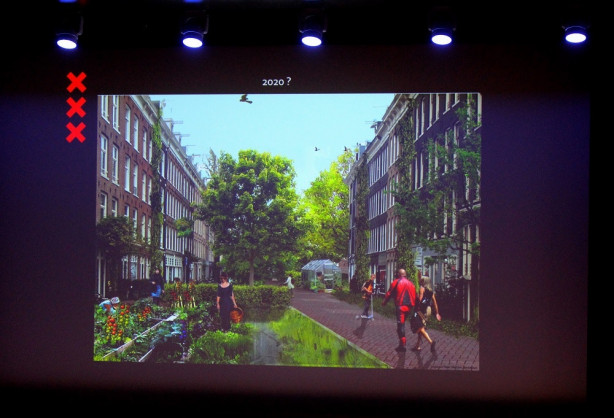 Of all of the initiatives presented during the conference, one of the most striking was the redevelopment of the Frans Halsbuurt, initiated by residents of the neighbourhood. The Frans Halsbuurt is an area in Amsterdam characterised by narrow streets and many pedestrians and cyclists. Residents put pressure on the local municipality to remove all parking spaces and redesign the public space to create a better living environment. Peter Ulle, senior designer for the project, explained how collaboration with the residents was made a priority and used to establish the starting points for the design. A rough sketch of what the area might look like in 2020: an impressive vision of green public space. It made the audience wonder: is this what the car-free city will look like...?